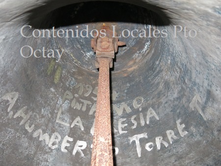 Una de las campanas presenta una inscripción que indica el año 1954 y el nombre de A. Humberto Torre T. quien habría realizado los trabajos de pintura del templo.